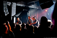 Zpátky k show: Ačkoliv publikum působilo před koncertem Deathstars poměrně ukázněně, když se čtyři zbývající členové objevili na pódiu, převalila se sálem vlna téměř hmatatelné energie a publikum zešílelo. Zpěváku Whiplasherovi stačilo málo, aby přinutil dav ječet, za to jeho marné pokusy o to fanoušky utišit většinou končily neúspěchem, protože skandování, ječení a jásání se zastavit prostě nedalo.