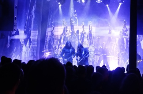 Headlinerem večera byli Dark Tranqullity. Legendy melodického death metalu k nám poslední dobou jezdí poměrně často, hlavním lákadlem tak byl velmi zajímavý setlist. Ten byl rozdělen na tři části, přičemž první oslavovala třicet let od vydání přelomové desky „The Gallery“. Scéna měla old school výzdobu, nic moderního, ale tradiční velká plachta za zády kapely, kouř a základní světla. Zazněla tutovka „Punish My Heaven“, „Lethe“ a také další tři songy ze zmíněného alba. Kapela hrála od začátku na plné pecky, totéž platilo i o zvuku, který působil značně přepáleně. Trochu déle se rozehříval zpěvák Mikael, protože první dva songy neměl úplně ideální hlas. To se poté změnilo a podal skvělý výkon jako vždy. Druhá porce pěti skladeb patřila dvacetiletému výročí alba „Character“. Bylo znát, jak se skupina vyvinula a že především klávesy a samply začaly patřit naplno do jejího projevu. Parádní fofr v podobě „The New Build“ nebo lehké zpomalení v „My Negation“ byly parádní záležitosti. Pódium změnilo plachtu a také jsme mohli vidět i modernější efekty, jako promítání videí na plachtu a lepší světla. Kapela působila dynamicky a Miakel jako vždy šířil dobrou náladu. Rovněž publikum bylo čím dál živější, ačkoliv zpočátku to tak nemuselo vypadat. Poslední třetina show byla výběrem několika songů z poslední desky, hitu „Atoma“ a dvou klasických pecek z „Fiction“ – „Terminus“ a „Misery´s Crown“. Kapela rozdávala radost a nebyl problém věřit, že ji hraní opravdu baví. Je jen škoda, že zvuk nebyl lépe pořešen, předchozí kapely na tom byly lépe.