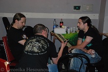 Italští Elvenking předvedli na svém prvním vystoupení v Praze perfektní show. Před samotným vystoupením se početná delegace z našeho zinu vměstnala s kompletní sestavou kapely do šatny a zde vznikl následující rozhovor. Slova se za Elvenking ujal kytarista Aydan, kterému přizvukoval zpěvák Damna.